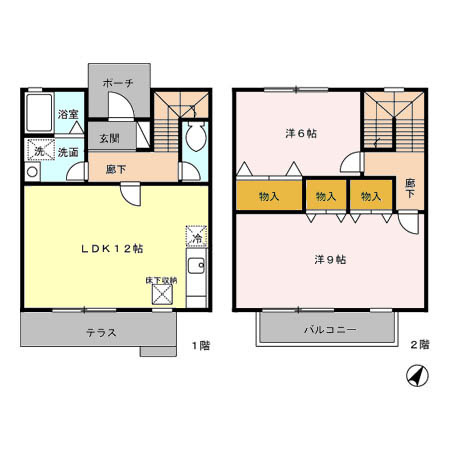 - 陽当り良好 / 閑静な住宅地 / 保証人不要 / 2人入居可 / 眺望良好 / 法人可 / ガスコンロ設置可 / 室内洗濯機置場 / フローリング / メゾネット / 専用庭 / バルコニー / プロパンガス / 公営水道 / 公共下水 / 24時間換気システム / 電気有 / 照明器具付き / 駐輪場 / 敷地内ごみ置き場 / ガスコンロ / コンロ2口以上 / オープンキッチン / バス・トイレ別 / 追焚機能浴室 / 温水洗浄便座 / 洗面台 / 洗髪洗面化粧台 / シャワー / 独立洗面台 / エアコン / シューズボックス / 収納豊富 / BS / 光ファイバー / TVモニタ付インターホン / 宅配ボックス / 初期費用カード決済可